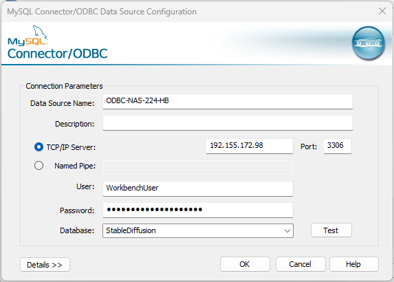 Verbindungsdaten für MySQL ODBC 9.2 Unicode Driver