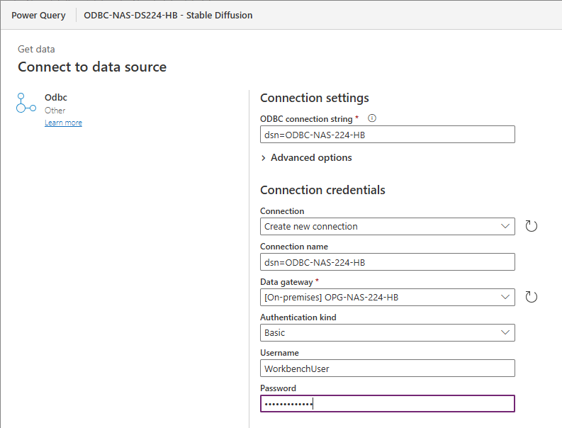 • DSN=ODBC-NAS-224-HB: Das ist der Name deiner eingerichteten ODBC-Quelle