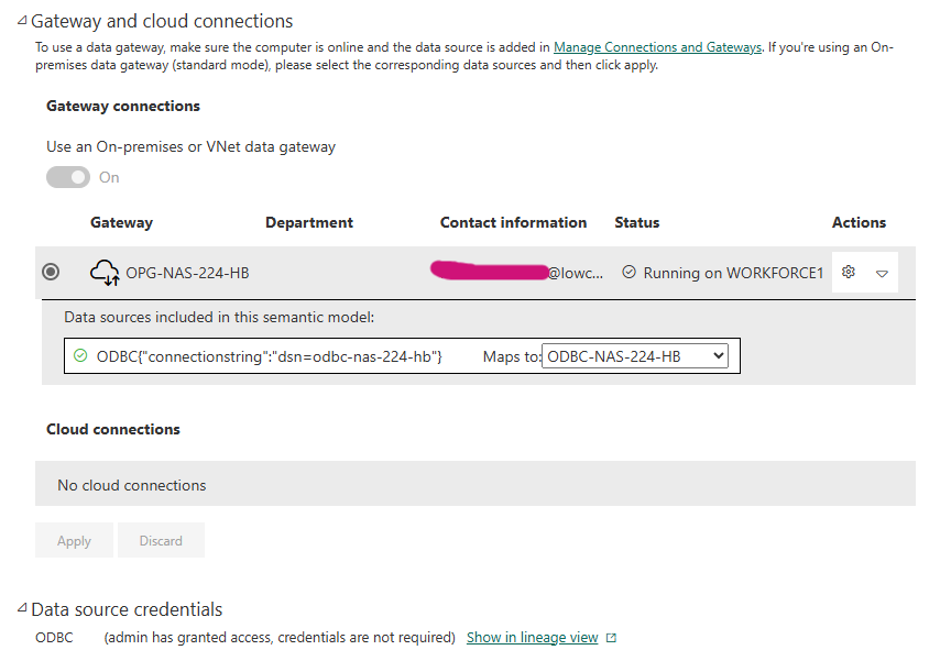 Das folgende Bild zeigt dir, wie es im Idealfall aussieht, wenn alles korrekt konfiguriert wurde – genau so sollte deine ODBC-Verbindung im Power BI Service dargestellt werden. Damit steht deinem automatisierten Datenzugriff auf die MariaDB über ODBC nichts mehr im Weg.